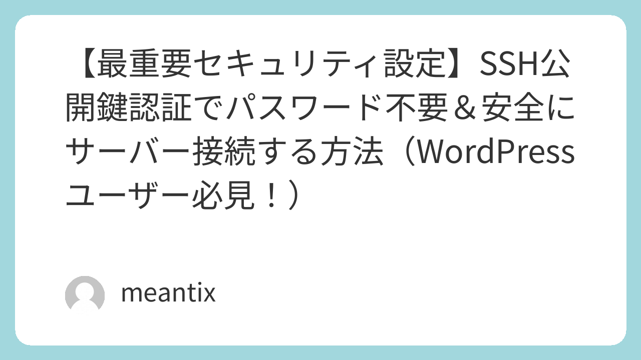 SSH公開鍵認証の設定は、サーバー管理の第一歩として非常に重要であり、WordPressサイトのセキュリティを根本から強化する対策です。これにより、日々のサーバーへのアクセスが安全かつスムーズになり、あなたの大切なサイトを不正アクセスから守ることができます。
