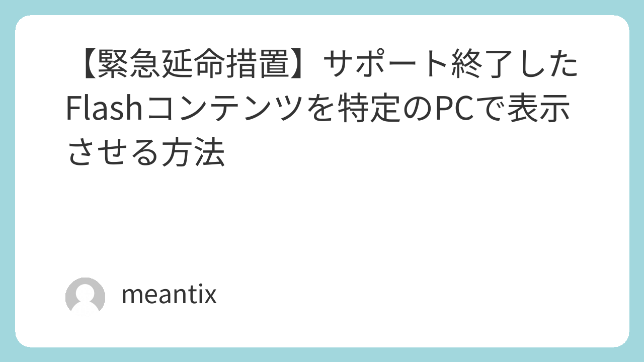 今回は、サポートが終了したFlashコンテンツを、やむを得ない事情で延命させるためのmms.cfg