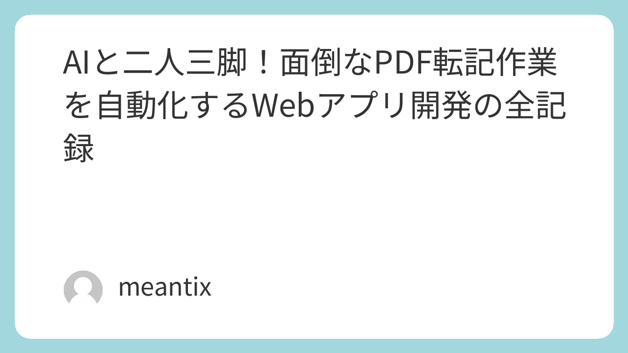 このブログのキャッチコピーは「未来の自分のための技術メモ、時々あなたのためのヒント。」ですが、今回は最新のAIと共に、面倒な未来の事務作業をなくす挑戦の記録です。